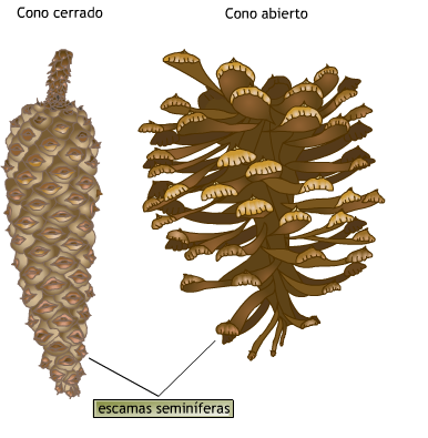 Al abrirse las escamas leñosas liberan las semillas aladas.