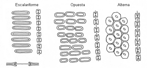 hexagonales, dispuestas en forma oblicua: Araucaria. |
