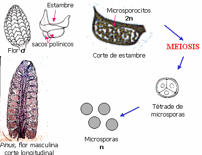 Microsporogénesis en Pinus, Gimnosperma